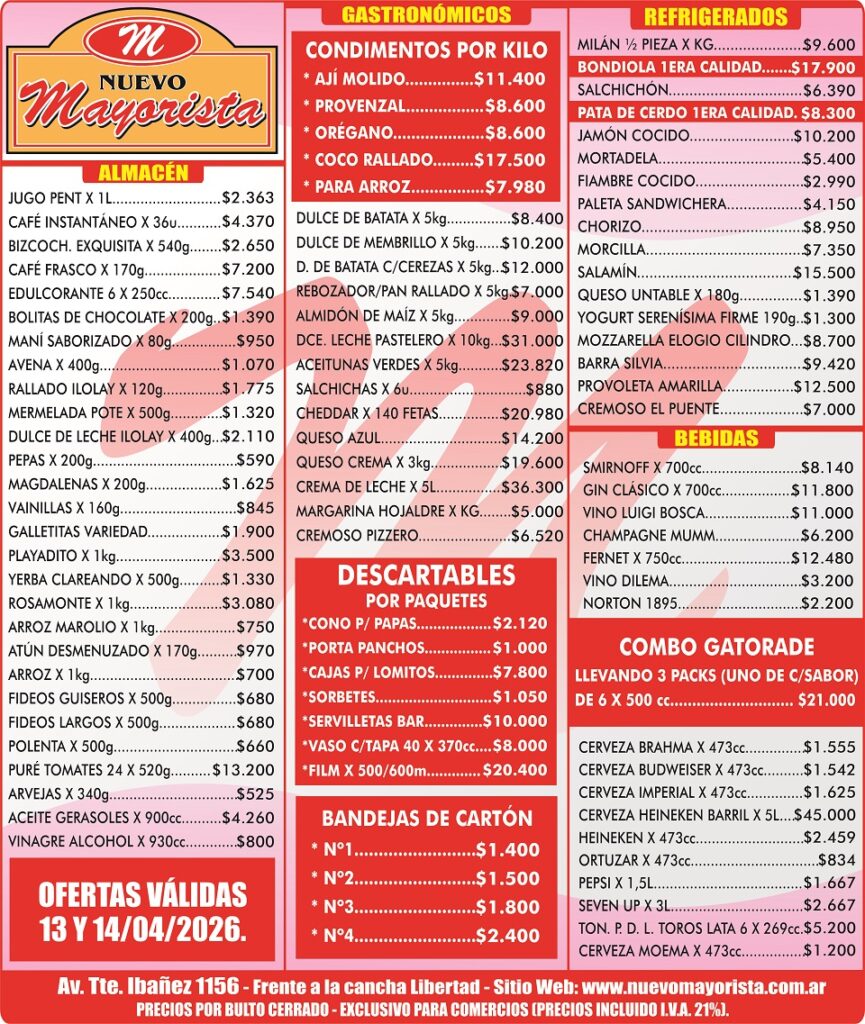 TODAS LAS CATEGORÍASAhorra hasta un 40% en tus compras Limpieza Lacteos Golosinas Bebidas Fríos Varios PRODUCTOS DESTACADOS Las imágenes son meramente ilustrativas Válido hasta el 13 y 14 de abril Arroz Marolio x1k – $750.00 $ 750,00 image/svg+xml Add to cart Avena Exclusivo – $1070.00 $ 1.070,00 image/svg+xml Add to cart Bizcochuelo Exquisita – $2650.00 $ 2.650,00 image/svg+xml Add to cart JABON LÍQUIDO ALA X800CC – $1970.00 $ 1.970,00 image/svg+xml Add to cart Magdalenas x200g – $1625.00 $ 1.625,00 image/svg+xml Add to cart Polenta Khunpay x500g – $660.00 $ 660,00 image/svg+xml Add to cart Queso Cremoso Pizzero Mediterranea – $6520.00 $ 6.520,00 image/svg+xml Add to cart Queso Untable La Quesera x180g – $1390.00 $ 1.390,00 image/svg+xml Add to cart Por favor, activa JavaScript en tu navegador para completar este formulario.Por favor, activa JavaScript en tu navegador para completar este formulario.Nombre *NombreApellidosTelefono Celular (WhatsApp)Correo electrónico *Comentario o mensajeEnviar